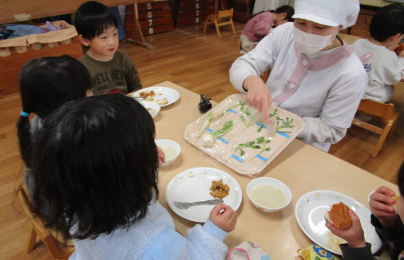 こいのぼりのハンバーグとても人気であっという間に食べていました!