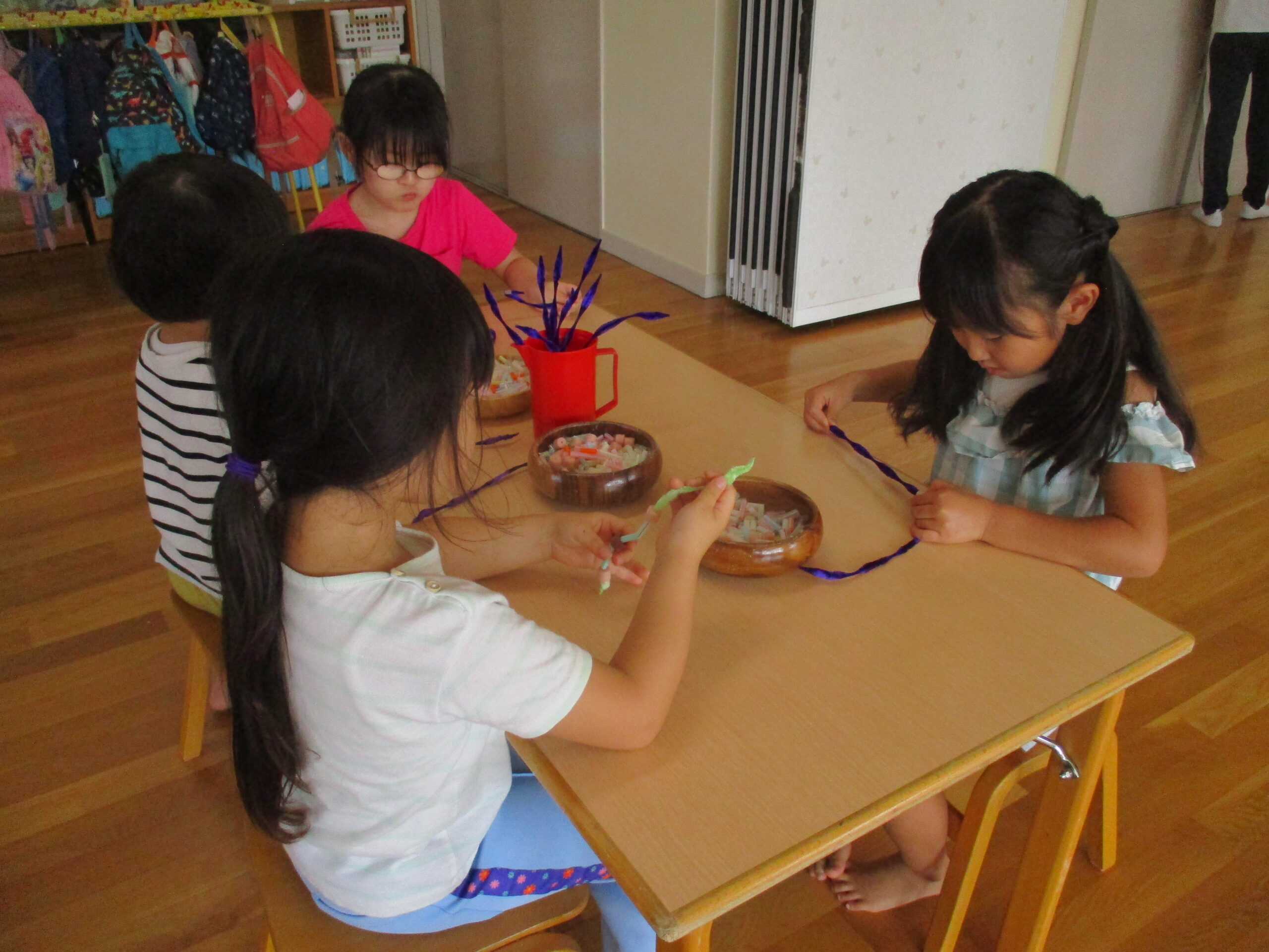 ブレスレット作り。自分の分だけでなく、家族の分も作っていましたよ♪
