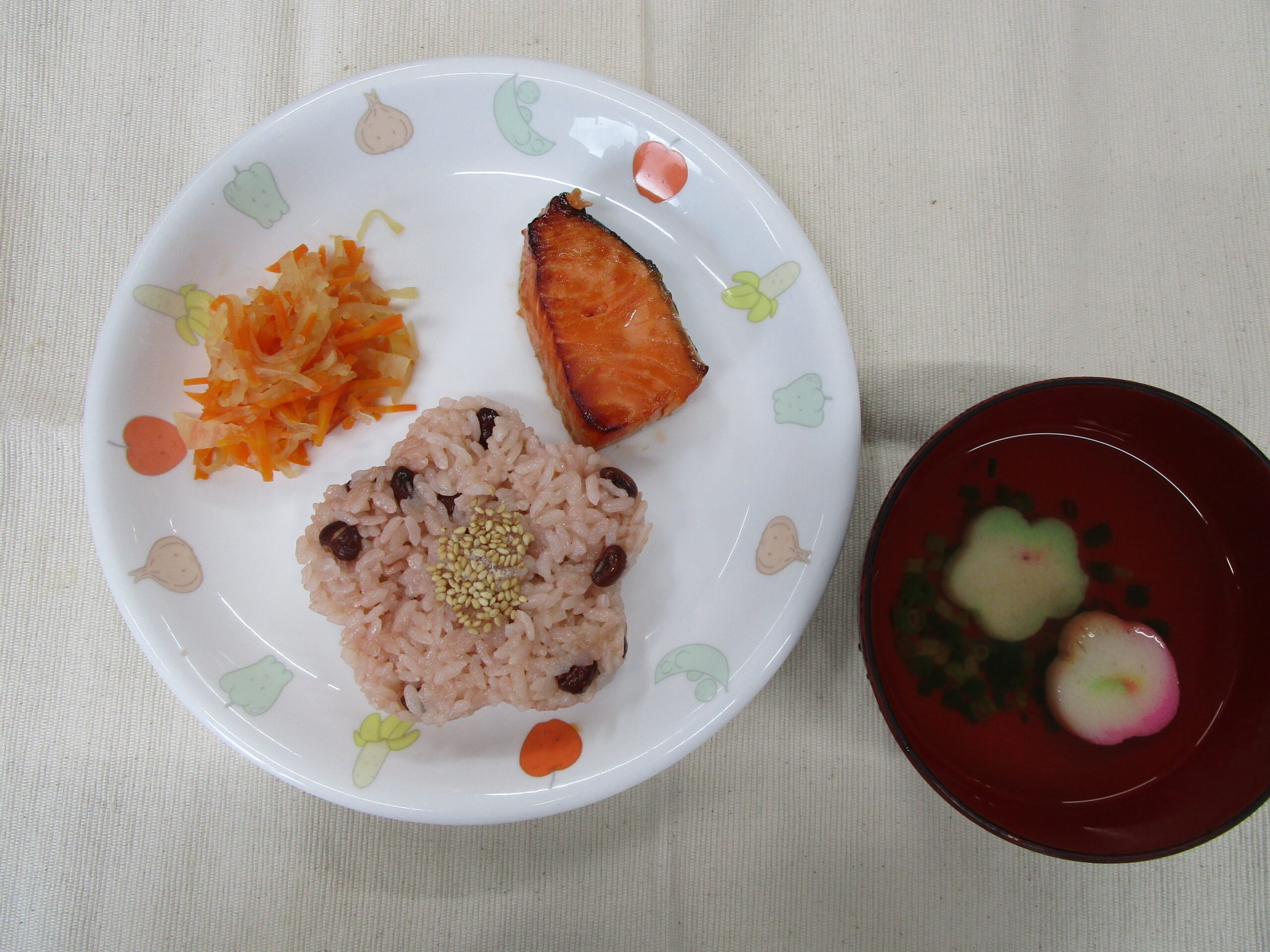 お赤飯はお花の形に可愛く盛り付けしました🌸