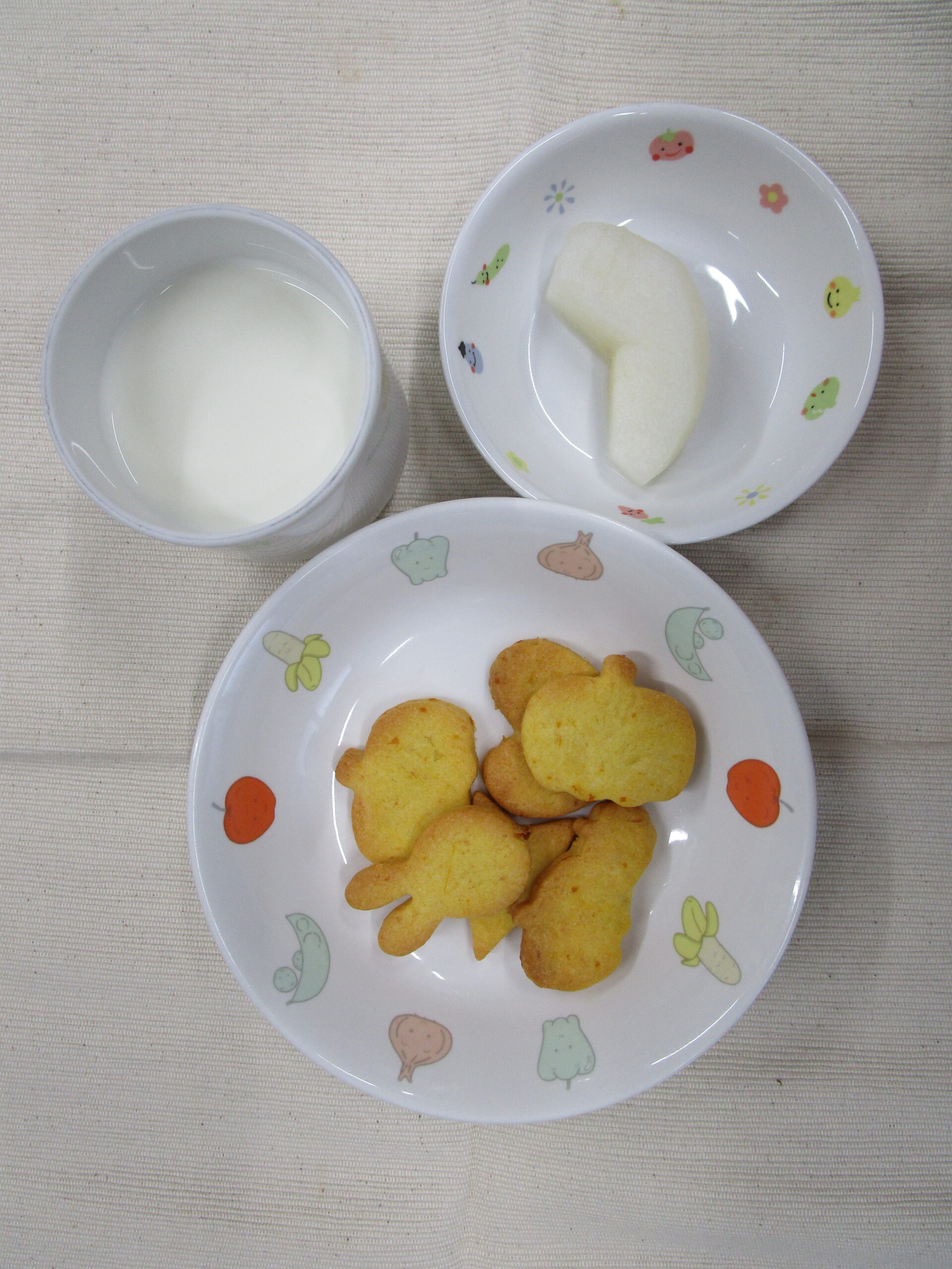 ハロウィンクッキー、梨、牛乳