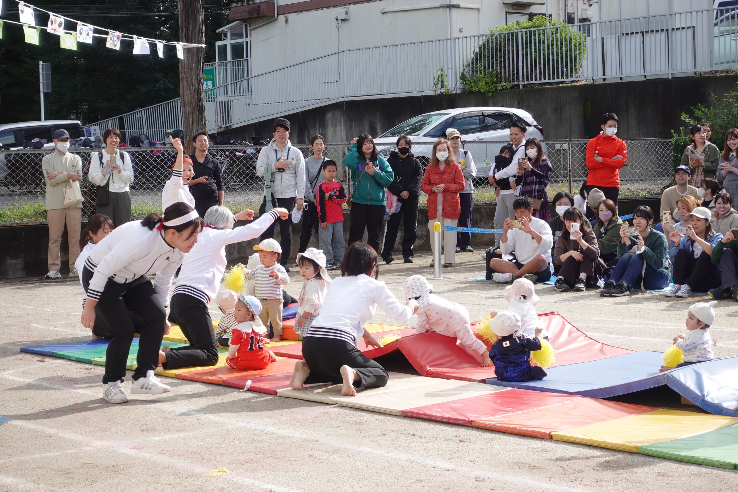 運動会では毎日楽しんでいる運動遊びの積み重ねやお遊戯など、保護者の皆様に見ていただくことができました。ひよこ組からぞう組まで、どのクラスの子ども達も元気いっぱい、笑顔いっぱいに表現することができました。お父さん・お母さん方に沢山応援してもらい喜んでいた子ども達です。当日は沢山のご協力をいただきまして、ありがとうございました。
