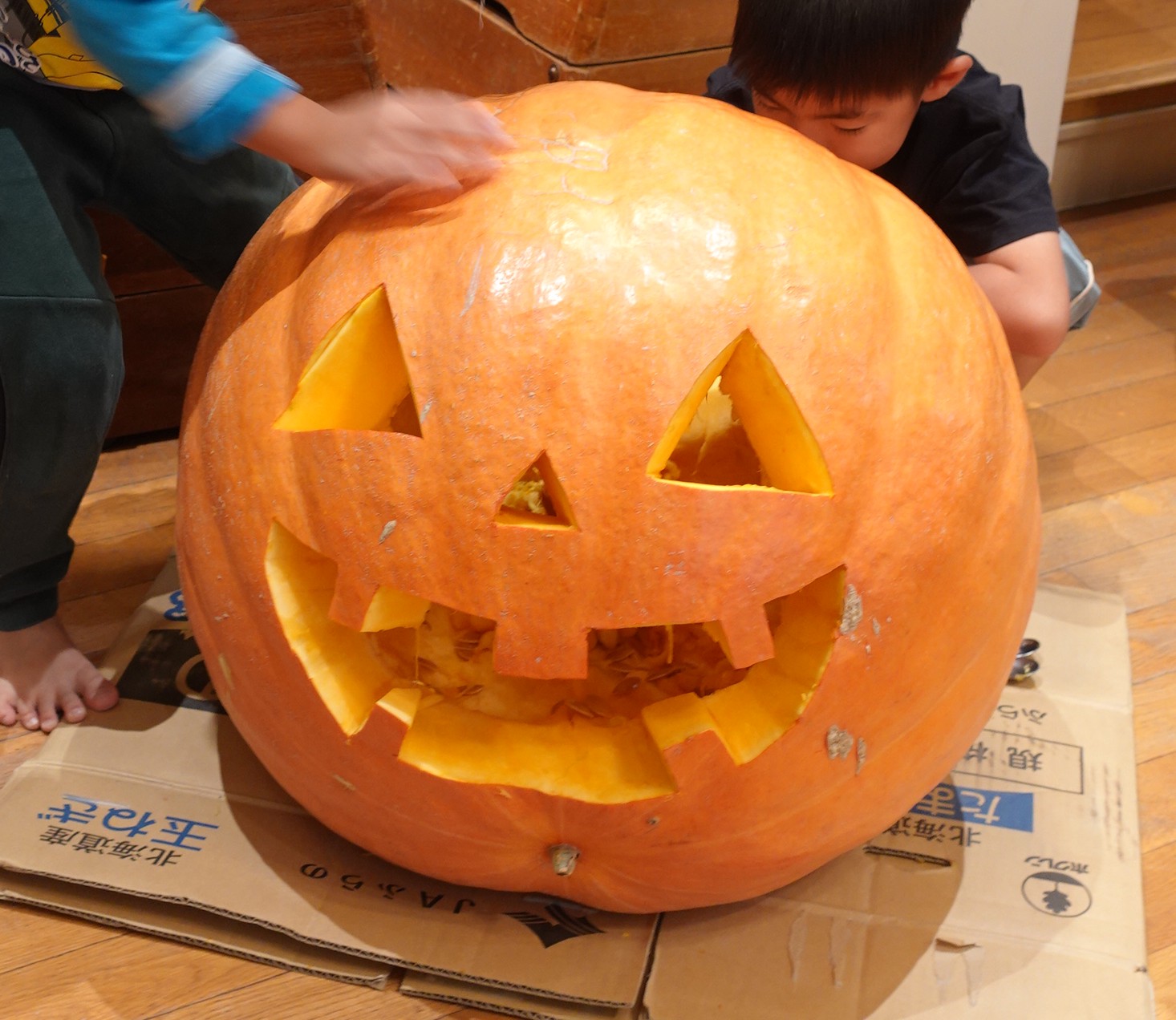 みんなで協力して作り、見事なかぼちゃが完成しました!