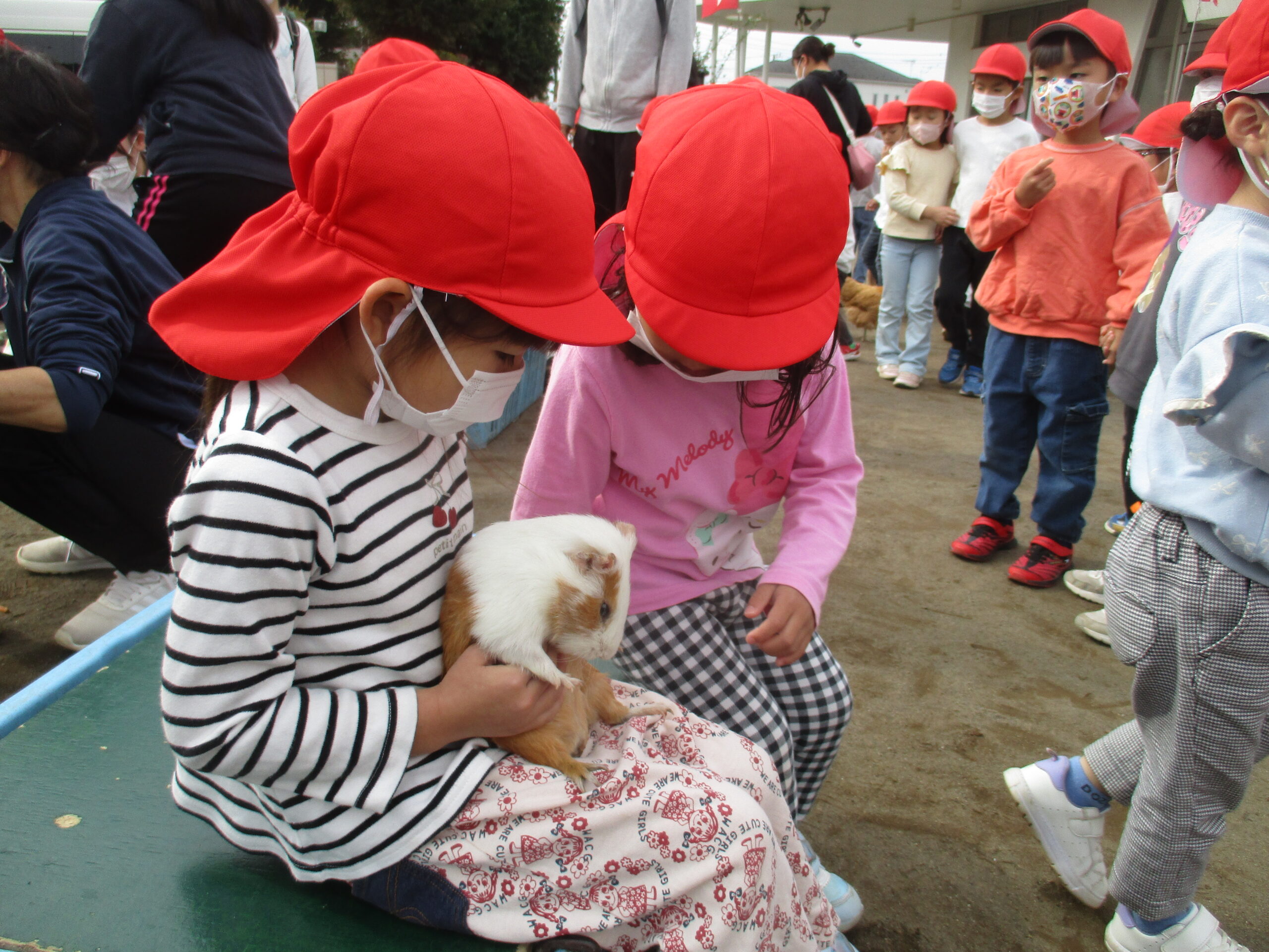 モルモットやうさぎなどの小動物を抱っこして癒されたり、野菜のえさをあげる体験をし