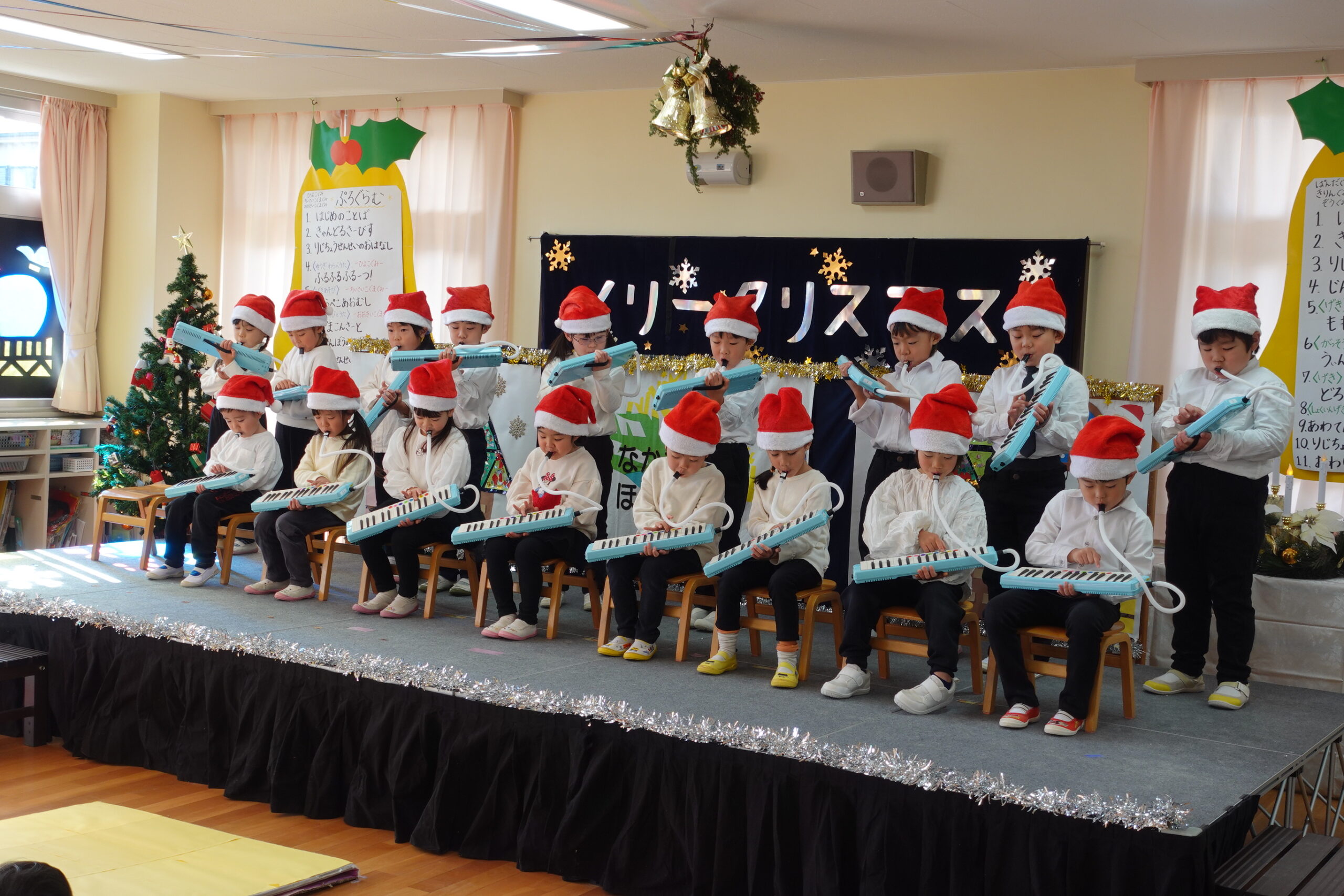 最後には、待ちに待ったサンタクロースが登場し「サンタさんだ!」と大喜び。プレゼントをもらい「ありがとう♪」と嬉しそうに伝える姿が見られました。こども達の笑顔溢れる温かなクリスマス会となりました。