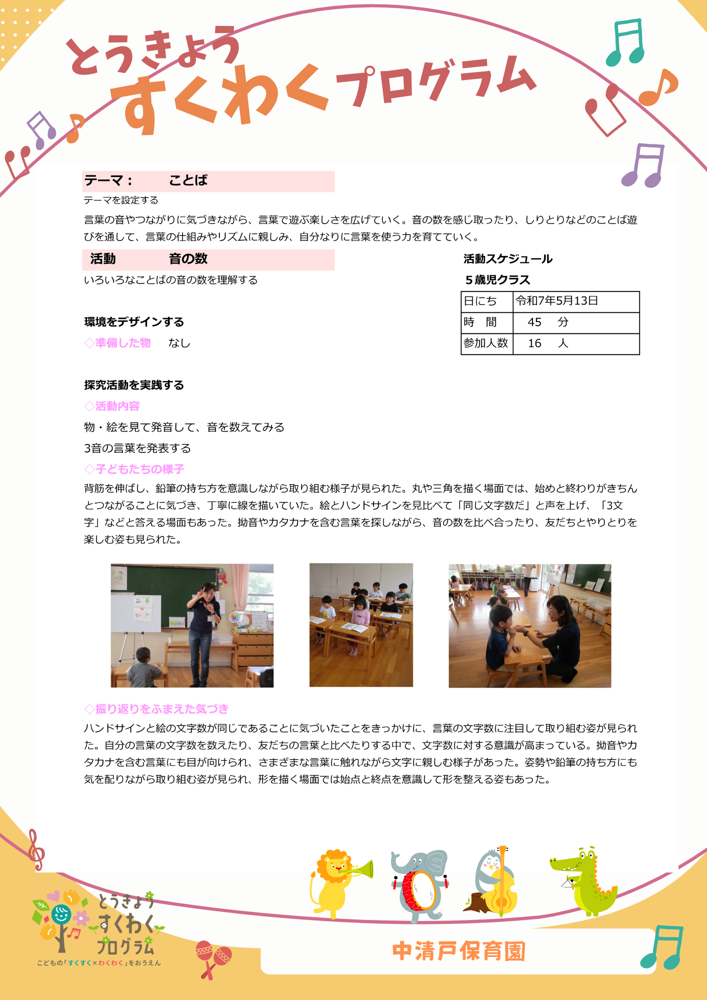 2026.01.17 ~とうきょう すくわくプログラム~ 【5月チャイルドステップ 5歳児ぞう組】 ~とうきょう すくわくプログラム~ 【5月チャイルドステップ... ~とうきょう すくわくプログラム~ 【6月チャイルドステップ...