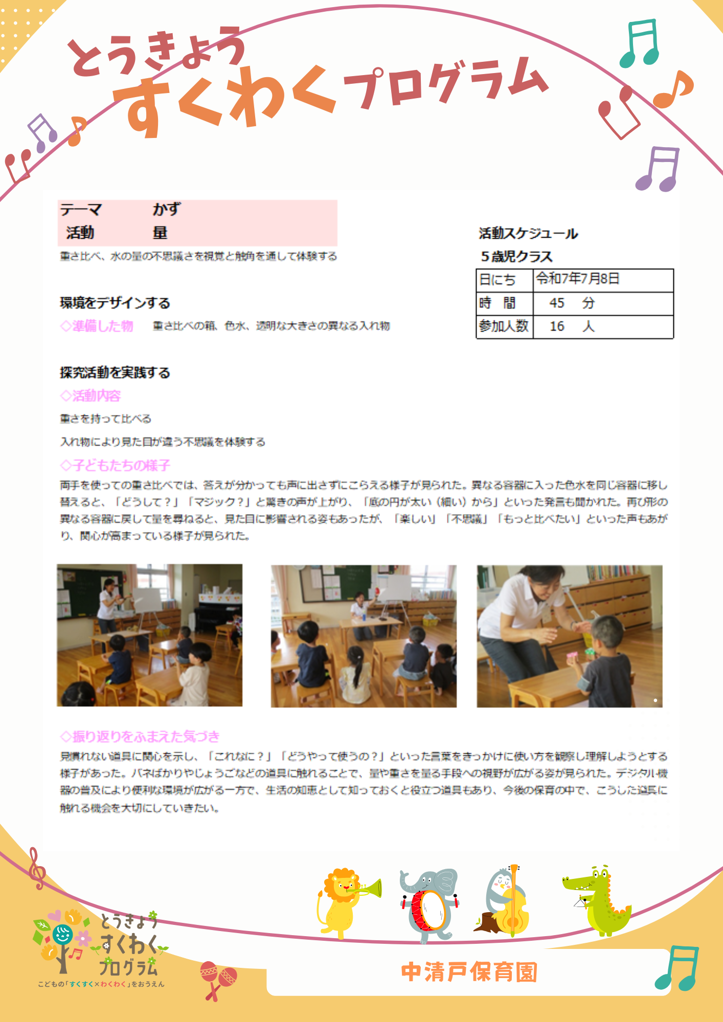 3. ~とうきょう すくわくプログラム~     【7月チャイルドステップ 5歳児ぞう組】