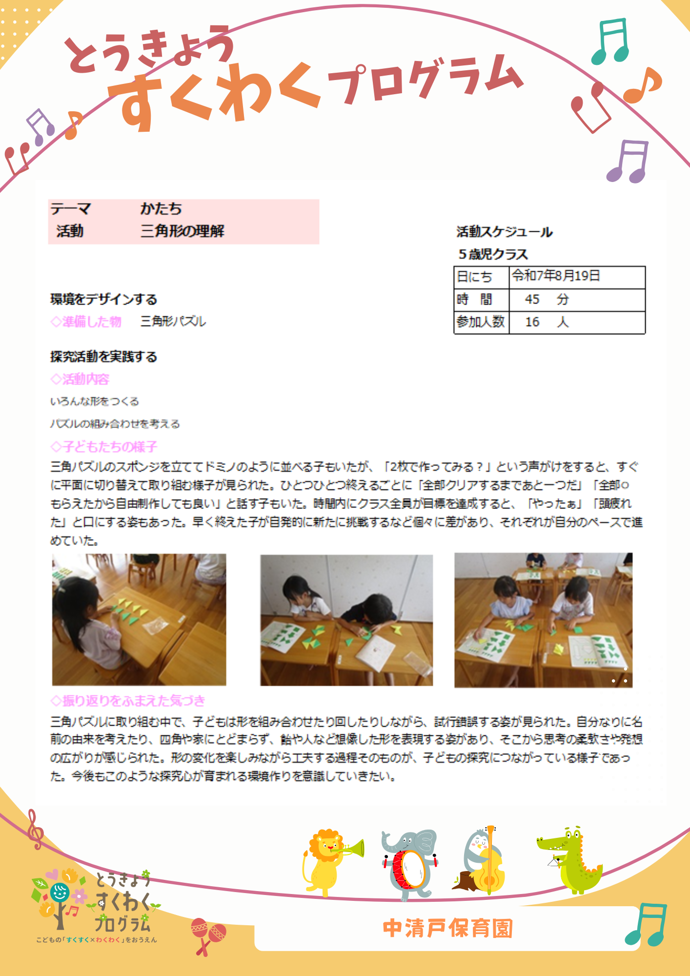 2026.01.17 ~とうきょう すくわくプログラム~ 【8月チャイルドステップ 5歳児ぞう組】 ~とうきょう すくわくプログラム~ 【8月チャイルドステップ... ~とうきょう すくわくプログラム~ 【9月チャイルドステップ...
