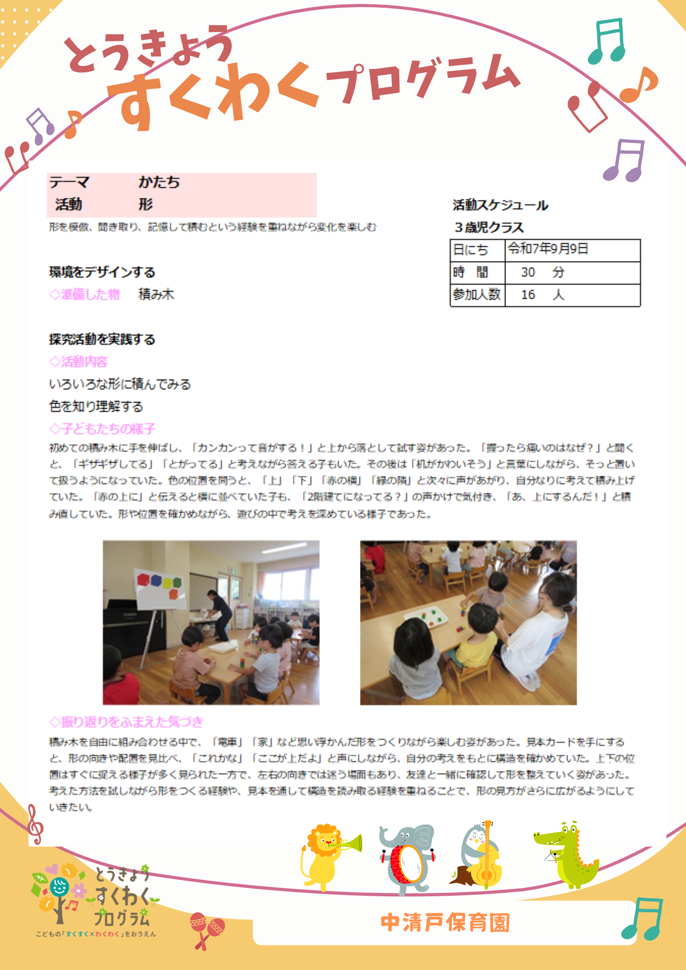 3. ~とうきょう すくわくプログラム~     【9月チャイルドステップ 3歳児ぱんだ組】