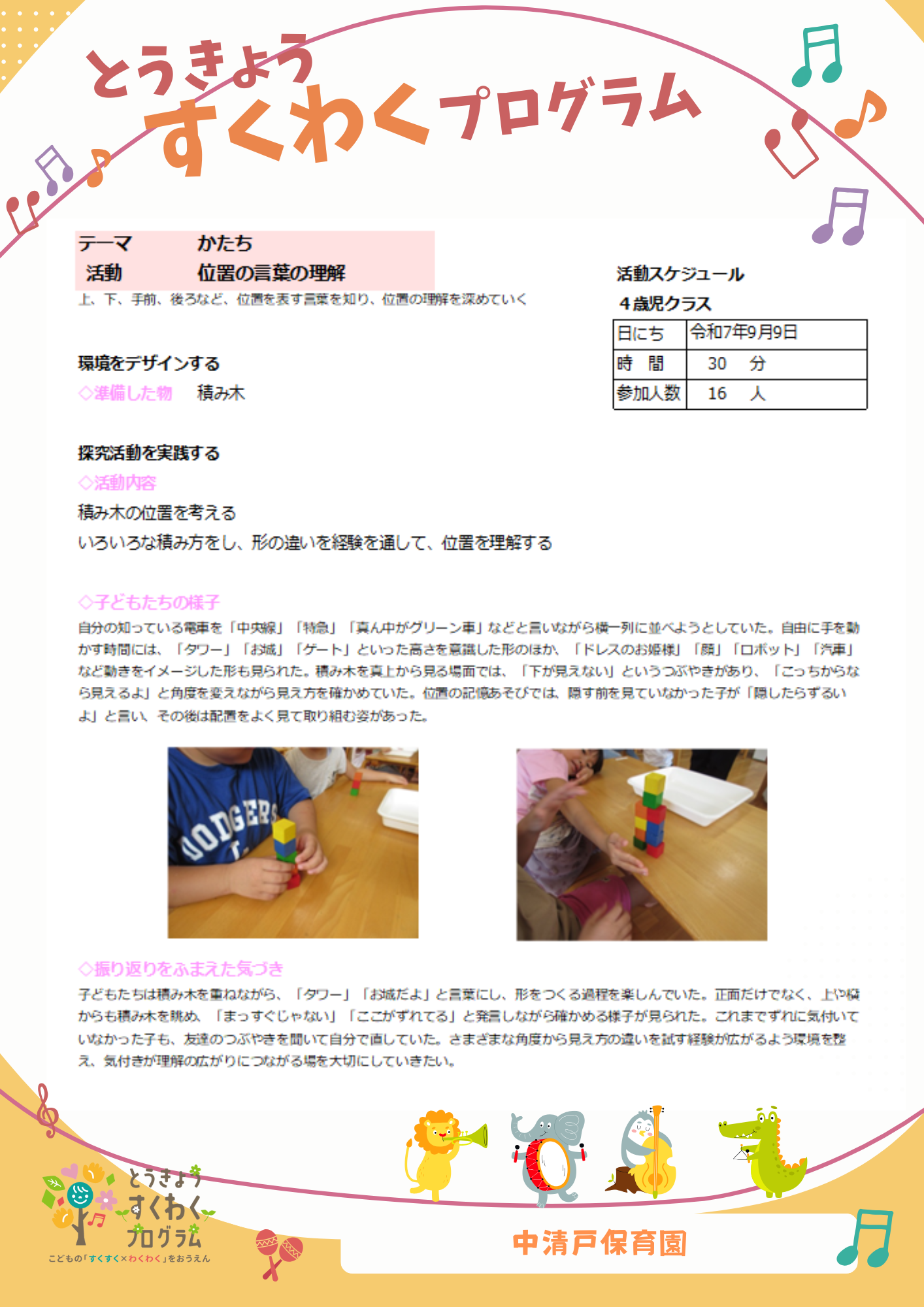 2026.01.17 ~とうきょう すくわくプログラム~ 【9月チャイルドステップ 4歳児きりん組】 ~とうきょう すくわくプログラム~ 【9月チャイルドステップ... ~とうきょう すくわくプログラム~ 【9月チャイルドステップ...