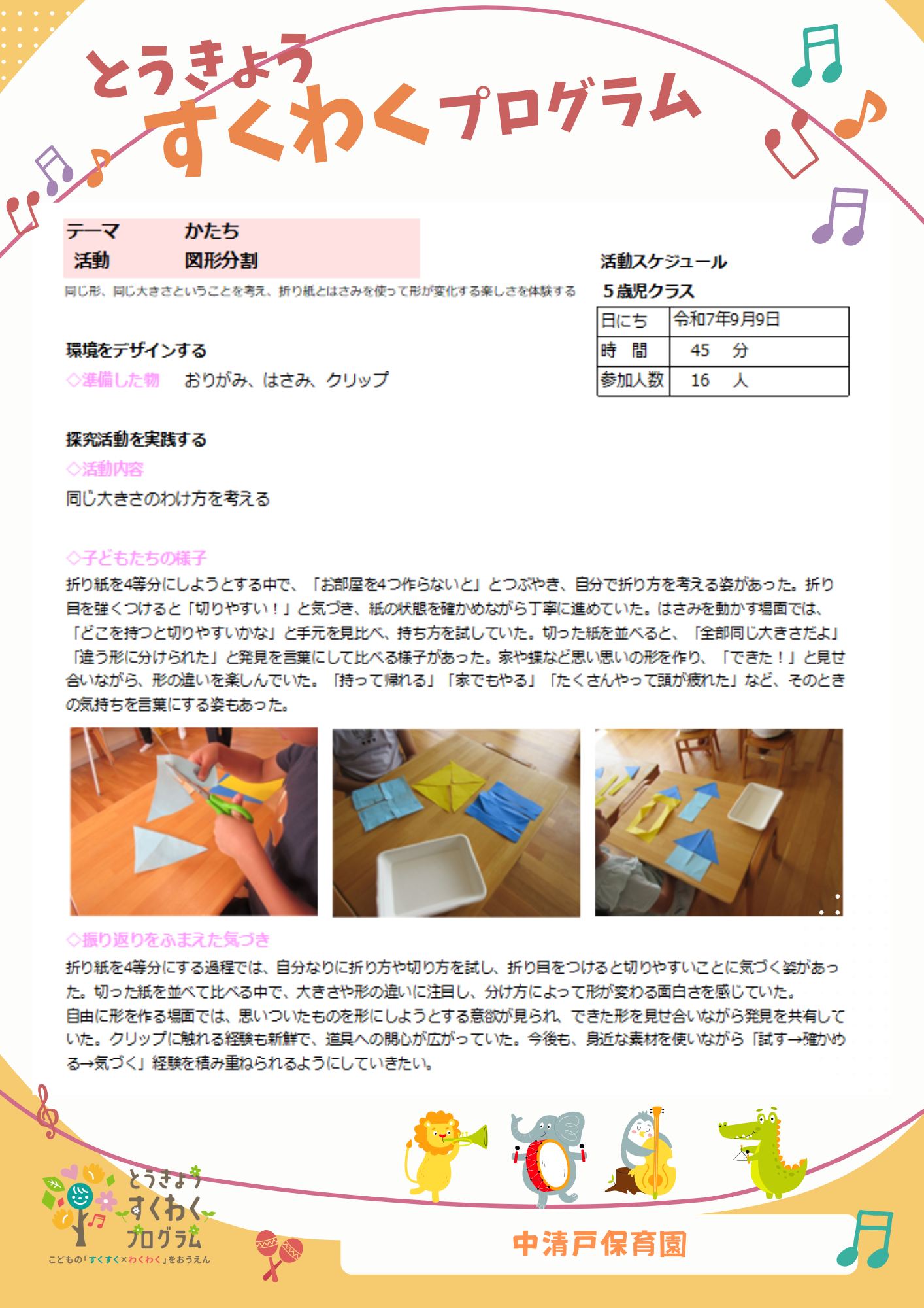 ~とうきょう すくわくプログラム~ 【9月チャイルドステップ 4歳児きりん組】